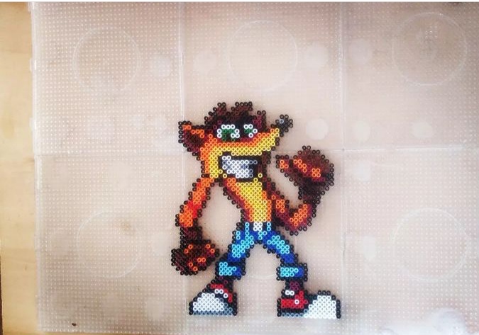 Crash was created by Naughty Dog as a funny and heroic character, capable of expressing different emotions with facial expressions. Throughout the saga, Crash only says one word, in the ending of Crash of the Titans, where he says, "Pancakes!" (Pancakes!). He makes noises when he gets hit and/or dies.